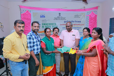 Mr. Saravanan, Project Director of District Rural Development Agency, Tirunelveli attended the camp as a special guest and presided over the ceremony. He then honored the 31 Swachh Workers with shawl, gave them protective gloves and awarded prizes to the winners of the competition held earlier. Later saplings were also planted.
